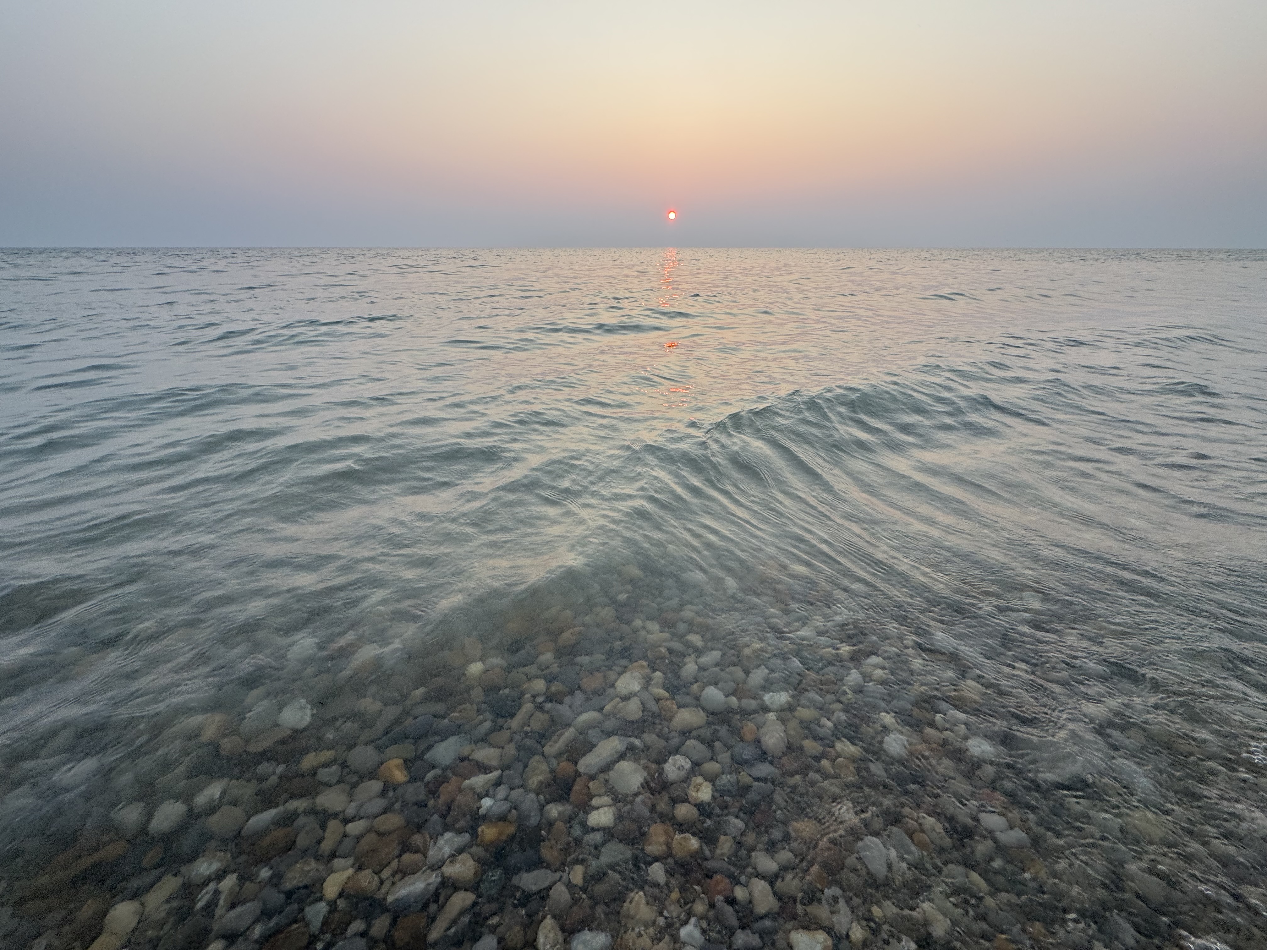 Sunset whilst rock hounding at the Torch Bay Nature Reserve. July 2025. Torch Lake, Michigan. Recreation. Joe Smith.