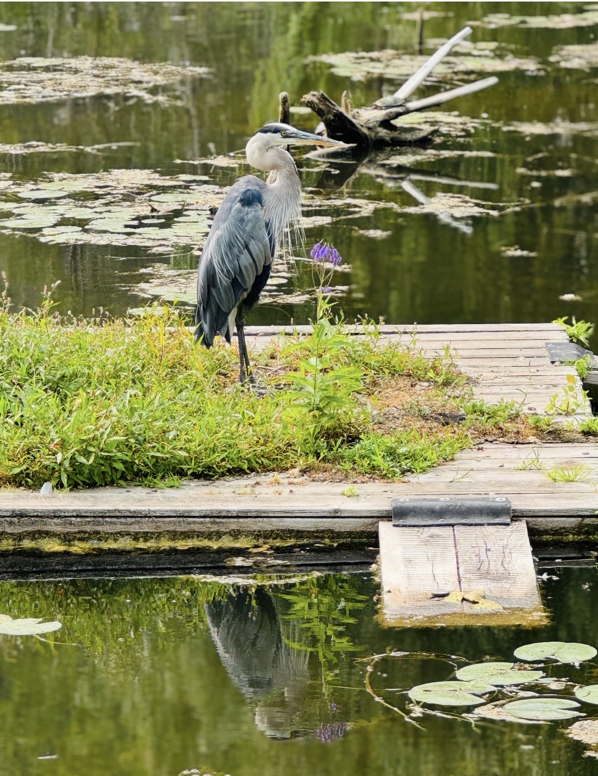 Blue heron hunting for food in the Bay of Quinte. Belleville, Ontario. Great Lakes Water in Action. Lindsay Rogers.
